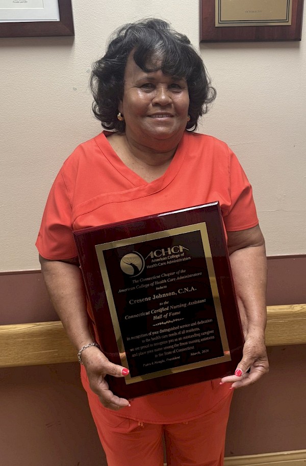 Recognized by the Connecticut Chapter of the American College of Health Care Administrators (ACHCA), this honor reflects Johnson’s remarkable 35 years of service and her enduring impact on residents, families, and colleagues. Known for her compassion, consistency, and leadership, she represents the very best of the profession and the values that define high-quality care.