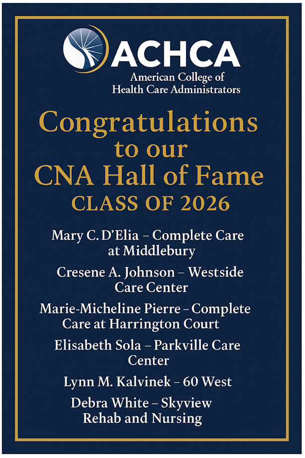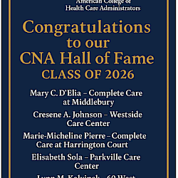 The CNA Hall of Fame, celebrated annually as part of the ACHCA’s educational programming, honors frontline caregivers who exemplify excellence in long term care through longevity, leadership, and an unwavering commitment to residents.